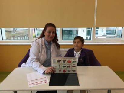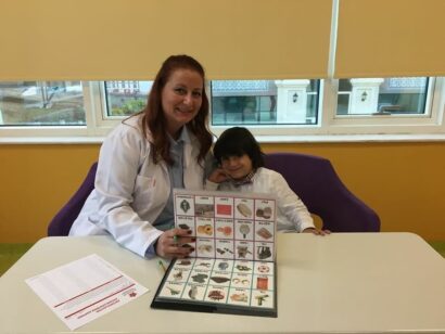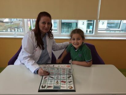Bugün Erdem Hastahanesi Dil ve Konuşma Terapisti Dessie Tanman, 2-12 yaş arası çocuklarda görülebilen dil ve ses bozukluklarını değerlendiren artikülasyon testini anaokulu,1. Ve 2. Sınıf öğrencilerimize uyguladı.