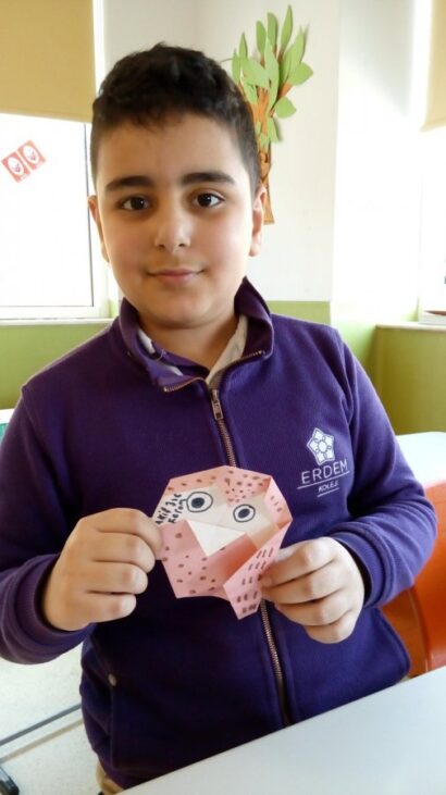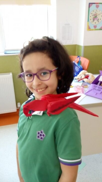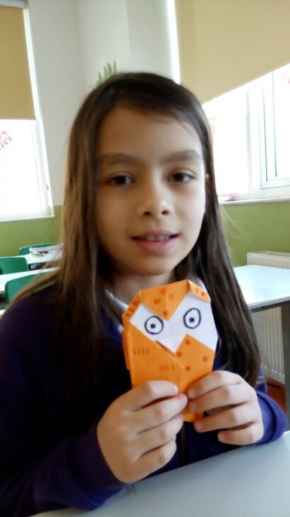 Kâğıt katlama sanatı olan origami, okulumuzda her hafta kulüp saatinde yapılmaktadır. Çok zevkli geçen bu saatte çok güzel eserler ortaya çıkartılmaktadır. Öğrencilerimiz bir kâğıttan neler yapılabileceğini her çalışmada tekrar tekrar yaparak öğrenmektedirler.Sadece kendilerine yapmıyor hatta arkadaşlarına da öğretmektedirler.